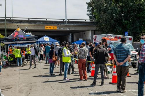 4月2日,美国奥克兰,民众排队等待接种新冠疫苗