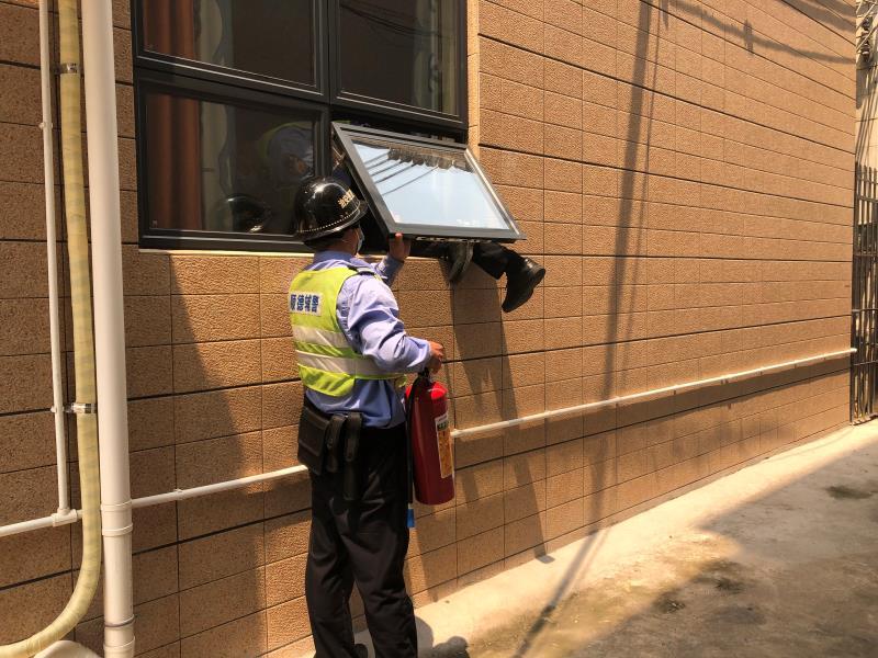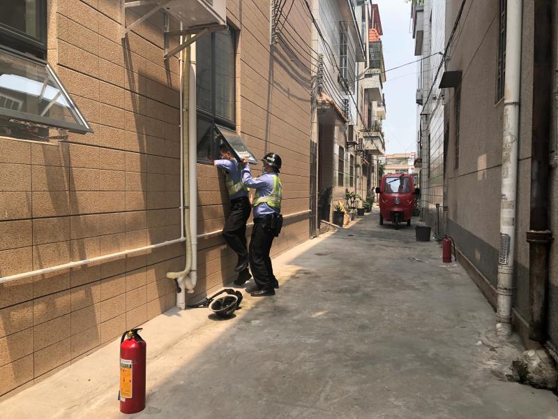接报后,勒竹警务室辅警立即驾驶微型消防车前往现场。现场发现屋内冒出浓浓黑烟,敲门无人应答。辅警通过窗户看见浓烟从厨房处冒出,且有浓烈的煤气味。为避免重大火灾事故发生,两名辅警顾不上危险,通力合作,果断通过狭窄的窗户翻进屋内,立即关闭厨房的煤气瓶开关,并用灭火器将炉灶上的明火扑灭。