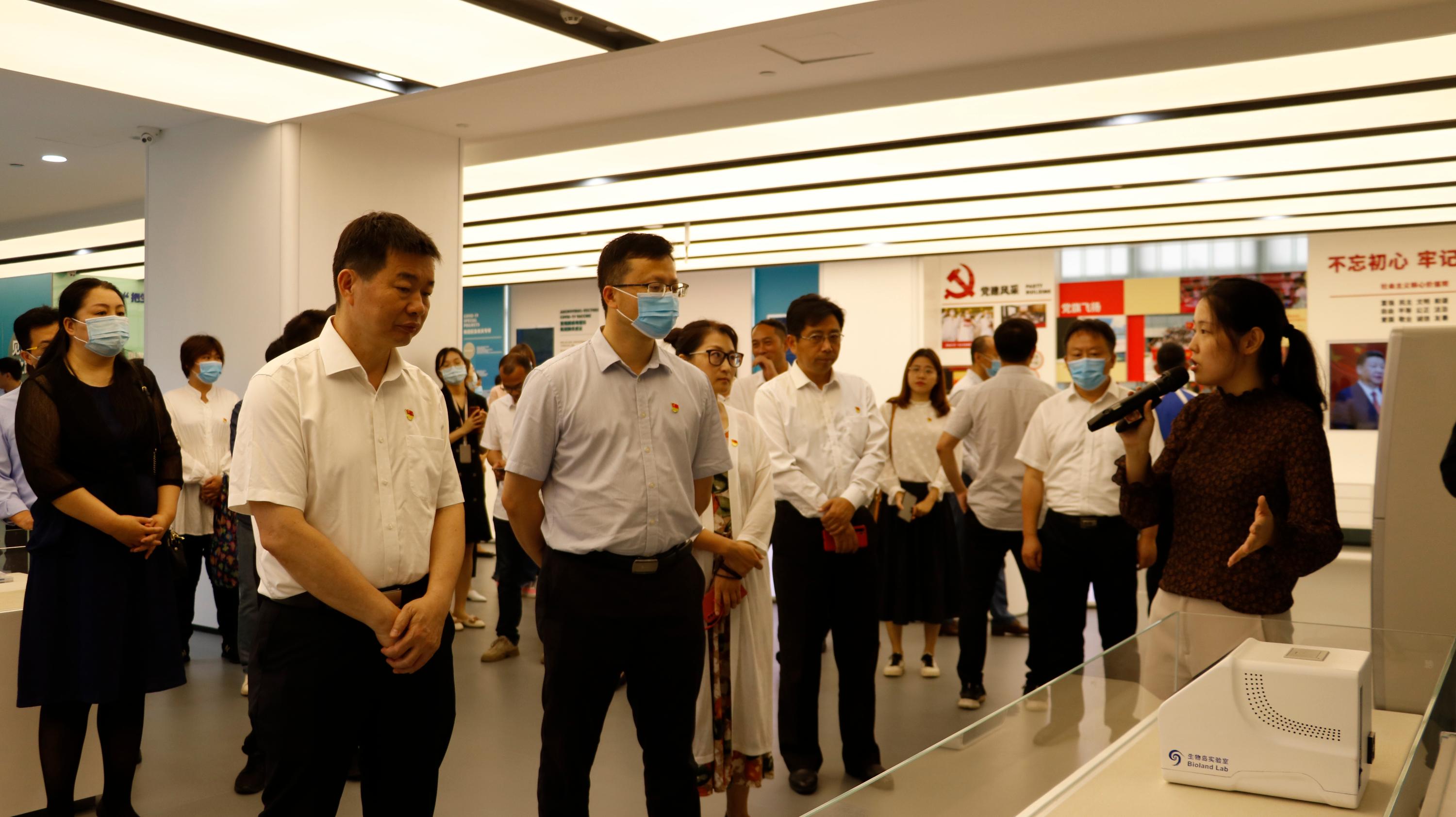参观过程中,党员们秩序井然,认真聆听讲解员的讲解,观看珍贵的生物科技装置,时而低语交流讨论,时而专心记录笔记,沉浸在严谨的科技学术氛围。面对着抗击新冠疫情时期的照片、抗疫数据及科研成果等,感叹健康美好生活的来之不易。