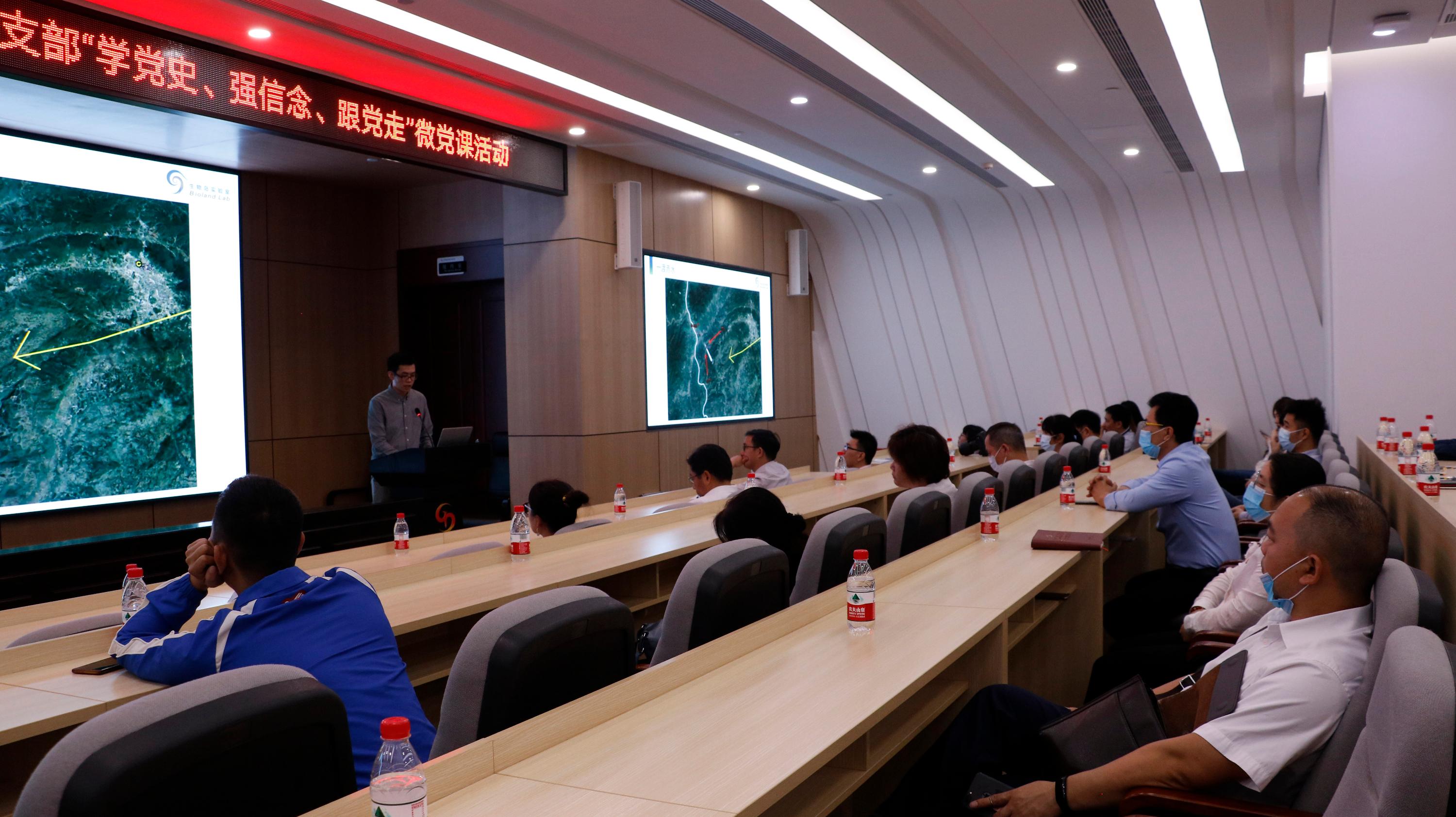 随后,长洲街道党员代表移步至广州再生医学与健康广东省实验室,与生物岛实验室共同开展“学党史、强信念、跟党走”微党课活动。4位来自生物岛实验室的青年代表依次上台,围绕新中国的成立、广州起义、四渡赤水、周恩来“三严”与“三实”的故事等内容,并结合个人工作实际,进行全方位党的理论知识学习与交流。