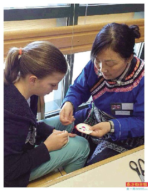 “最先开始是有个在法国做酒店的外国朋友,带了一个翻译过来找我们。”杨华珍向南都记者回忆,“对方是一家五星级酒店,需要我们做靠枕、桌子的玻璃下面压的方巾这些物件,觉得我们的产品很有民族特色”。就这样,杨华珍凭借着手中的传统织绣作品,接到了一笔38万元的订单。