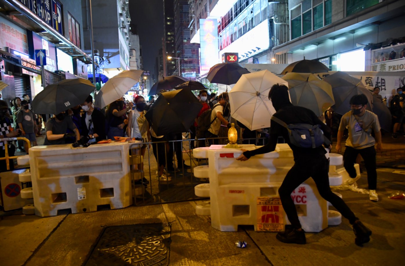 暴徒在修例风波期间利用各种自制的武器攻击警方。(大公文汇全媒体资料图片)