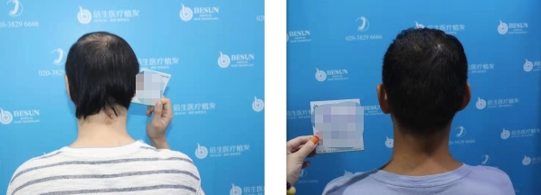 倍生植发机构拍摄的术前(左)术后(右)对比图