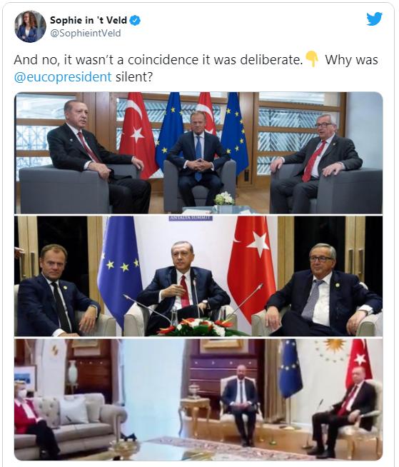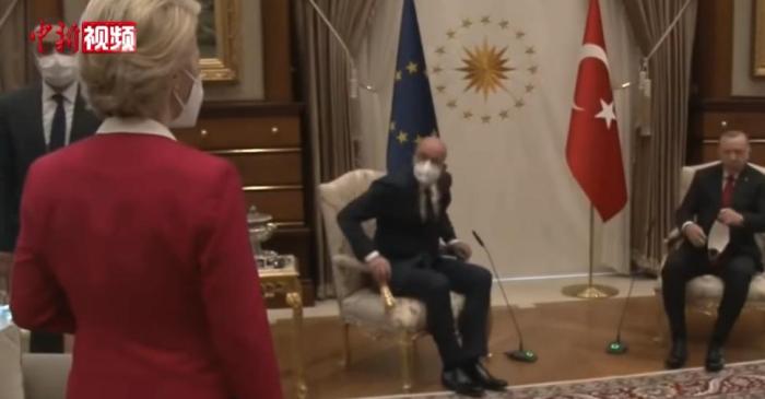 作为到访土耳其的欧盟领导人和三人中唯一的女性,冯德莱恩在座次安排上被“边缘化”的情况,迅速引发争议。