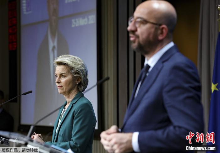 欧盟委员会主席冯德莱恩(左)和欧洲理事会主席米歇尔。