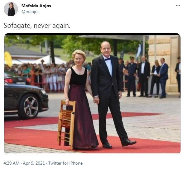 外国网友发出的一张“冯德莱恩拿着椅子”的图。图片来源:社交媒体截图。