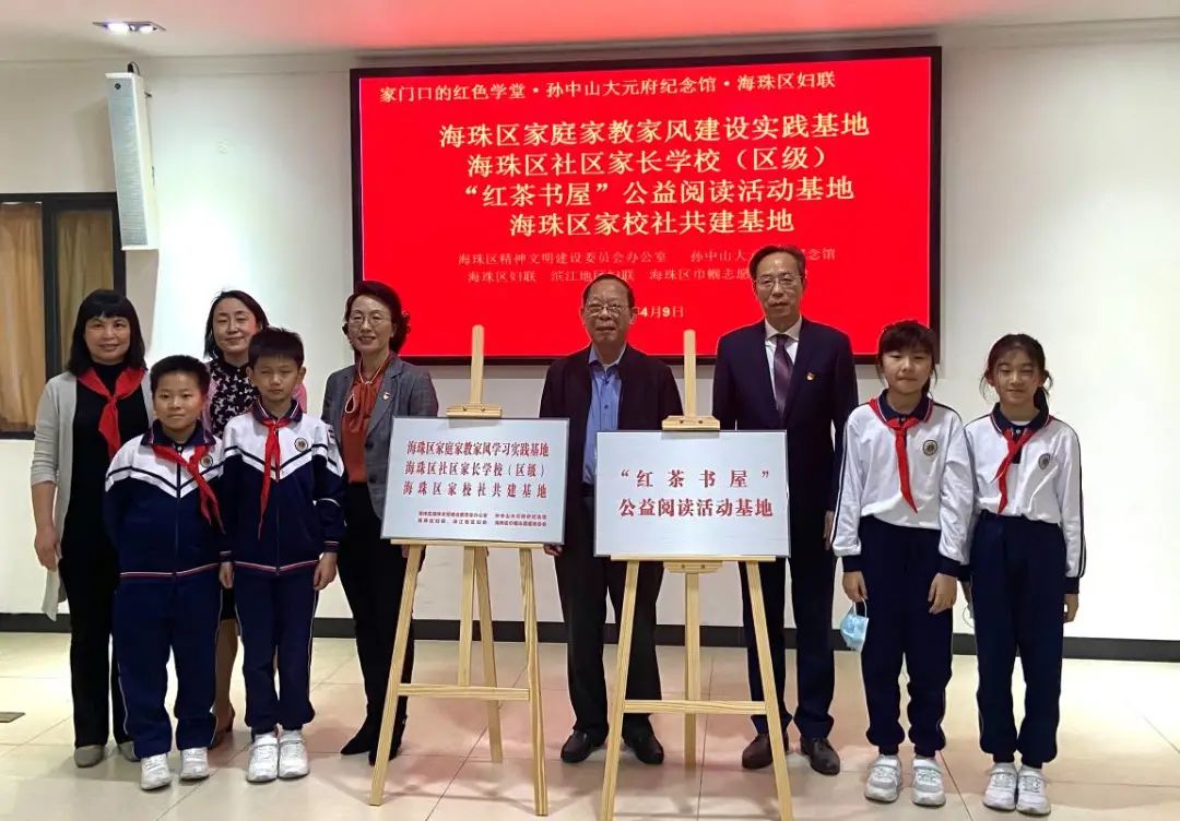 活动上,海珠区妇联党组书记、主席蒋薇、孙中山大元帅府纪念馆馆长程存洁共同为“妇女之家”牌匾和“海珠区家庭家教家风学习实践基地 海珠区社区家长学校”、“红茶书屋”公益阅读活动基地揭牌。