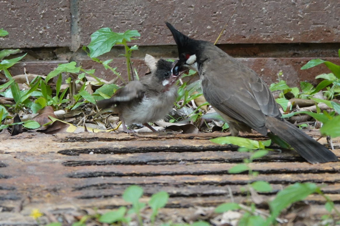 这边喜鹊才筑巢,那边红耳鹎夫妇已经开始育雏了。省实附中的社员们还在饭堂后面的林荫小道旁的榕树上发现了两只萌萌的红耳鹎雏鸟。