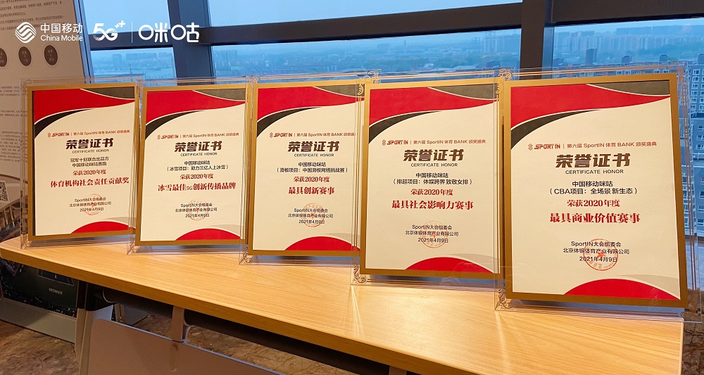 值得一提的是,在本次SportIN体育BANK颁奖盛典期间,中国移动咪咕公司斩获“2020年度冰雪最佳5G创新传播品牌”、“2020年度最具社会影响力赛事”、“2020年度最具商业价值赛事”、“2020年度体育机构社会责任贡献奖”、“2020年度最具创新赛事”多个奖项。