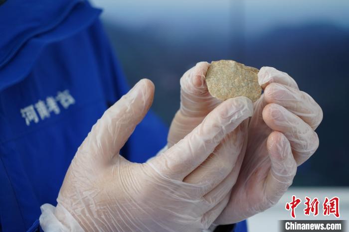 图为考古人员展示出土的打制器 李超庆 摄