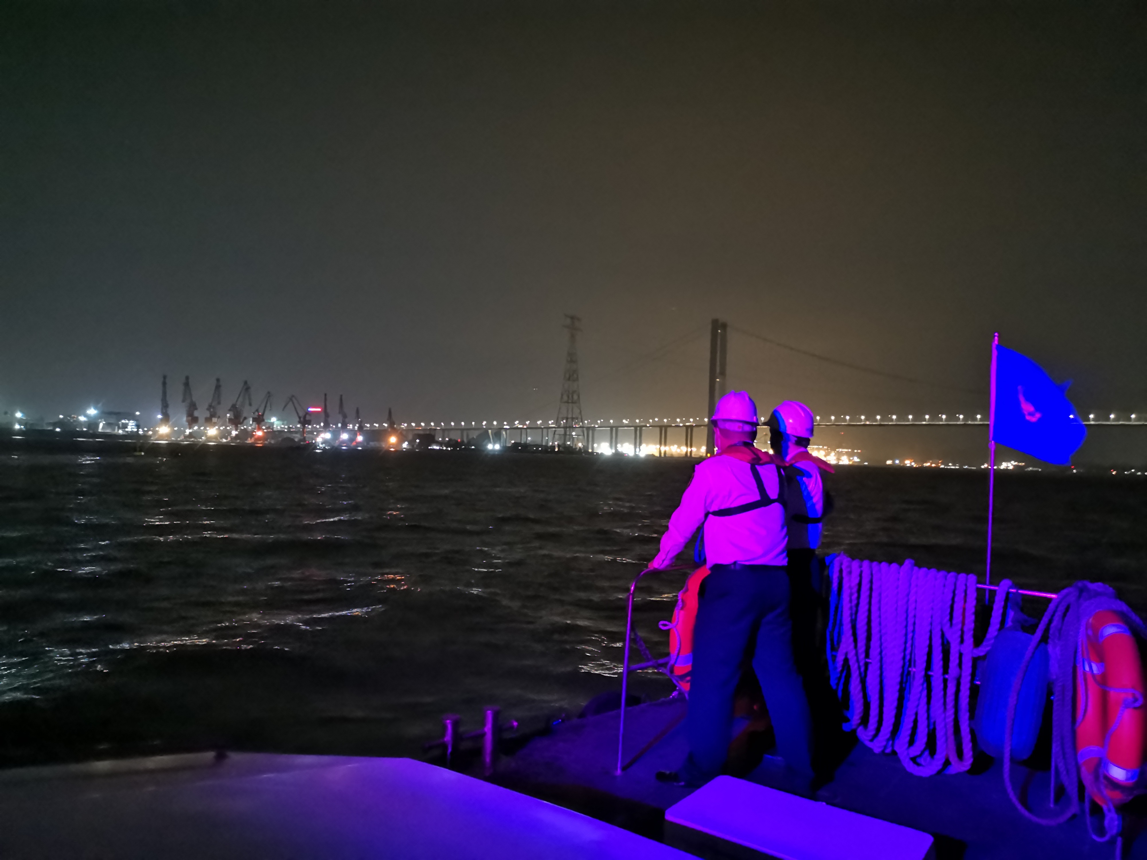 11日凌晨2时许,南方+记者在事发海域附近看到,涉事船只“海澜中谷9”正停在海面上,船上装有集装箱,附近有海事部门船只正在巡逻。