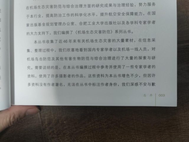 《机场生态灾害防范》系列丛书总序中提到,有关使用作者图片未标注的问题。