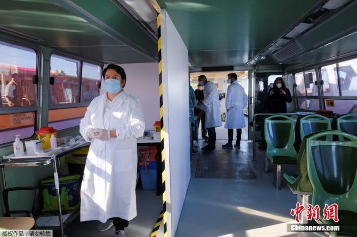 当地时间4月5日,意大利威尼斯,水上巴士在当天变为新冠疫苗接种站,为80岁以上的老年人接种新冠疫苗。