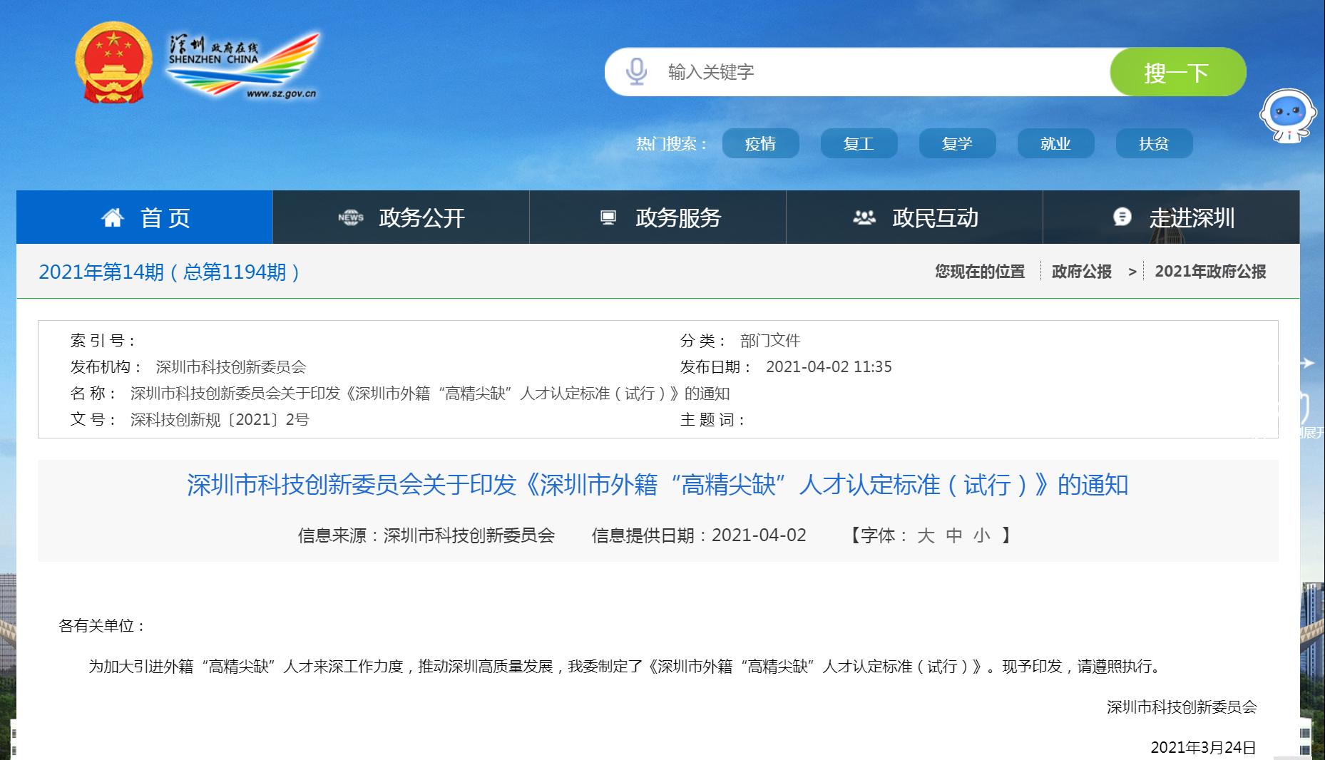 原标题:深圳发布外籍“高精尖缺”人才认定标准 这七类外籍人员可申请