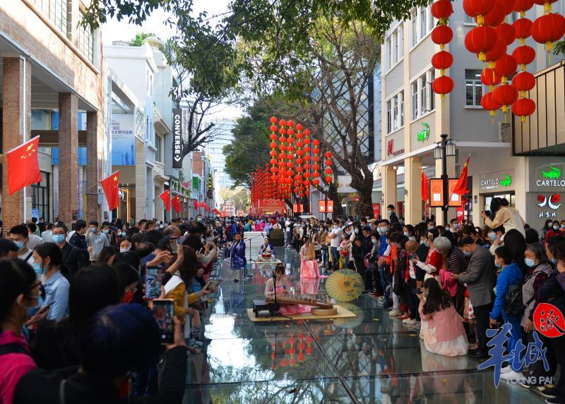2021年2月18日,农历初七,广州北京路步行街上展示了一场精彩的民族音乐表演,吸引了不少的市民现场观看。