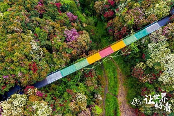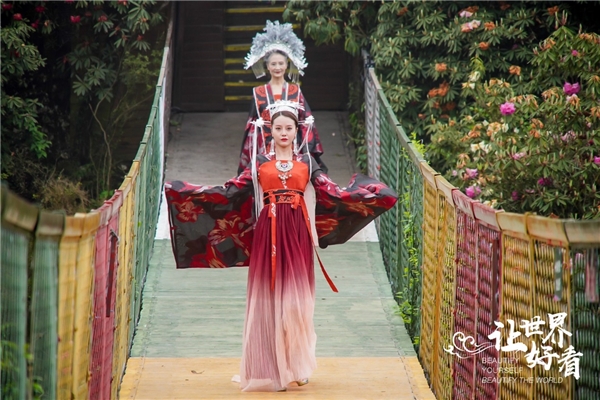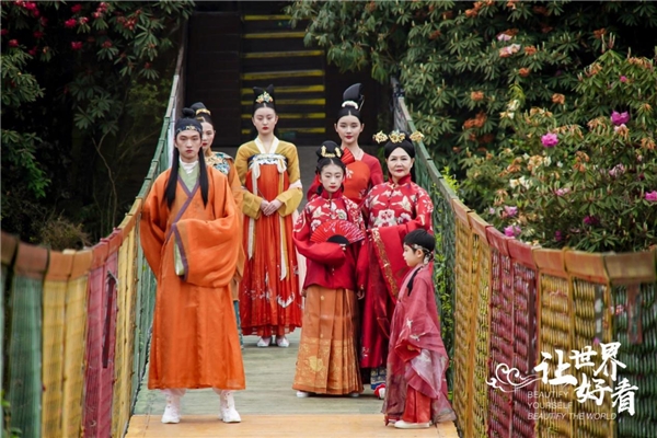 4月10日百里杜鹃携手央视财经上演的“百人汉服实景大秀”在金坡景区索玛花桥震撼上演。