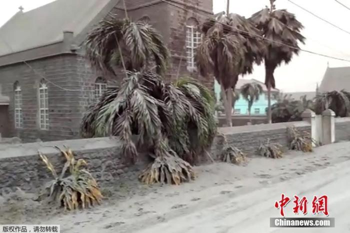 据报道,灰白的火山灰覆盖圣文森特岛的街道、住家和建筑物,空气中也飘散着薄薄的火山灰尘雾,弥漫着硫磺的气味。大多数房屋至今没有水电供应。