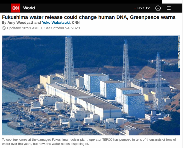 CNN在报道中援引国际绿色和平组织报告称,碳14作为“人类集体辐射剂量的主要元素,有可能损害人类DNA”。