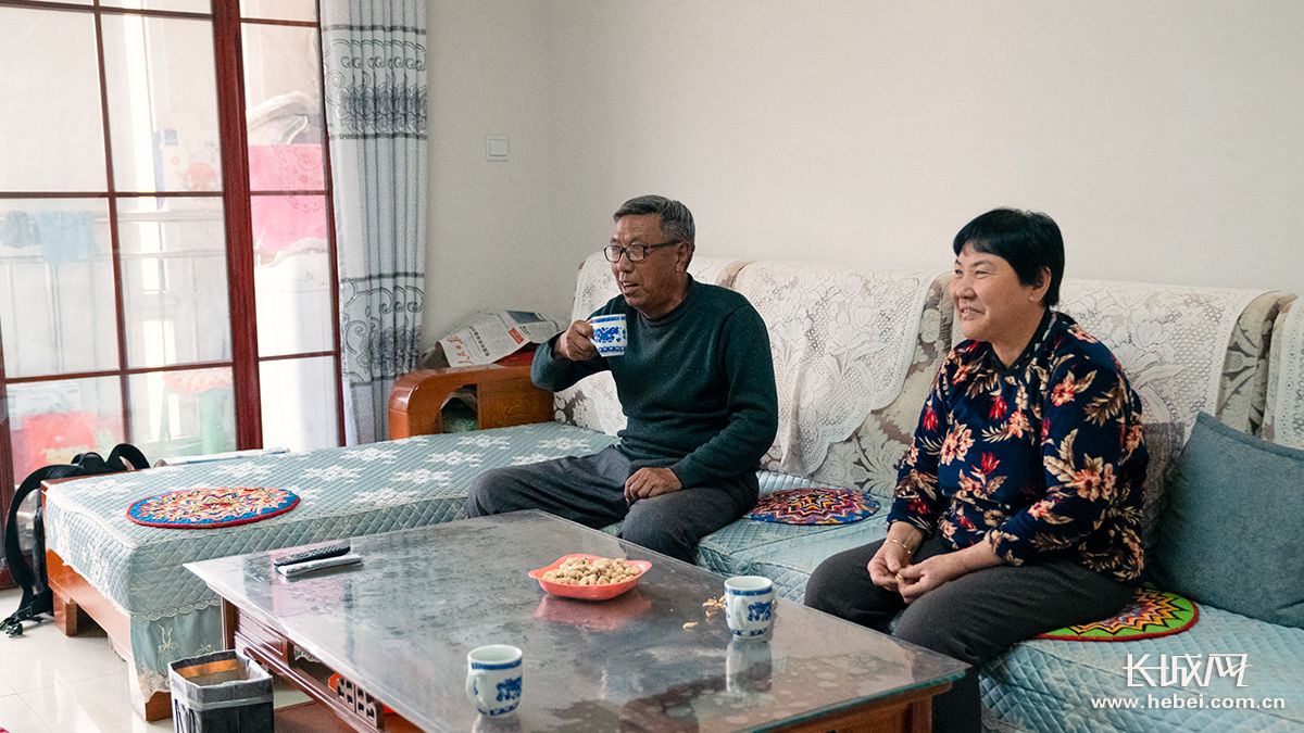 4月9日,安玉杰(左)和老伴在整洁明亮的新居内。长城网记者 康义涵 摄