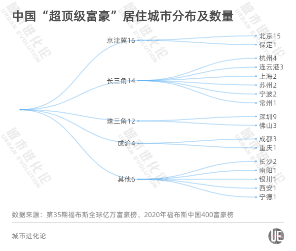 伴随富豪整体数量的增长,今年中国“超顶级富豪”数量达到52个(完整榜单见文末)。一个问题是,新进入的富豪都来自哪些城市?