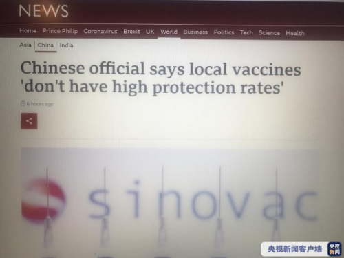 即使当事人已经公开辟谣,但是英国广播公司12日上午在其新闻官网上仍然假高福之口,继续传播虚假信息,该报道的题目是“中国官员称国产疫苗有效率不高”。BBC称,中国已经研发出四种新冠疫苗,其中一些疫苗在国外进行测试,有效率只有50%。BBC称,中国曾表示,外国人只要接种了中国的疫苗,会更容易获得中国签证。