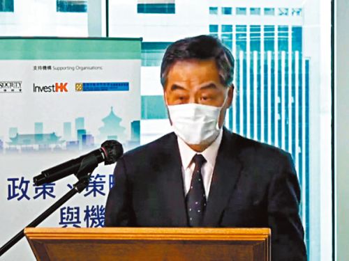 梁振英在致辞中从3个方面探讨“十四五”规划为香港法律界带来的机遇: