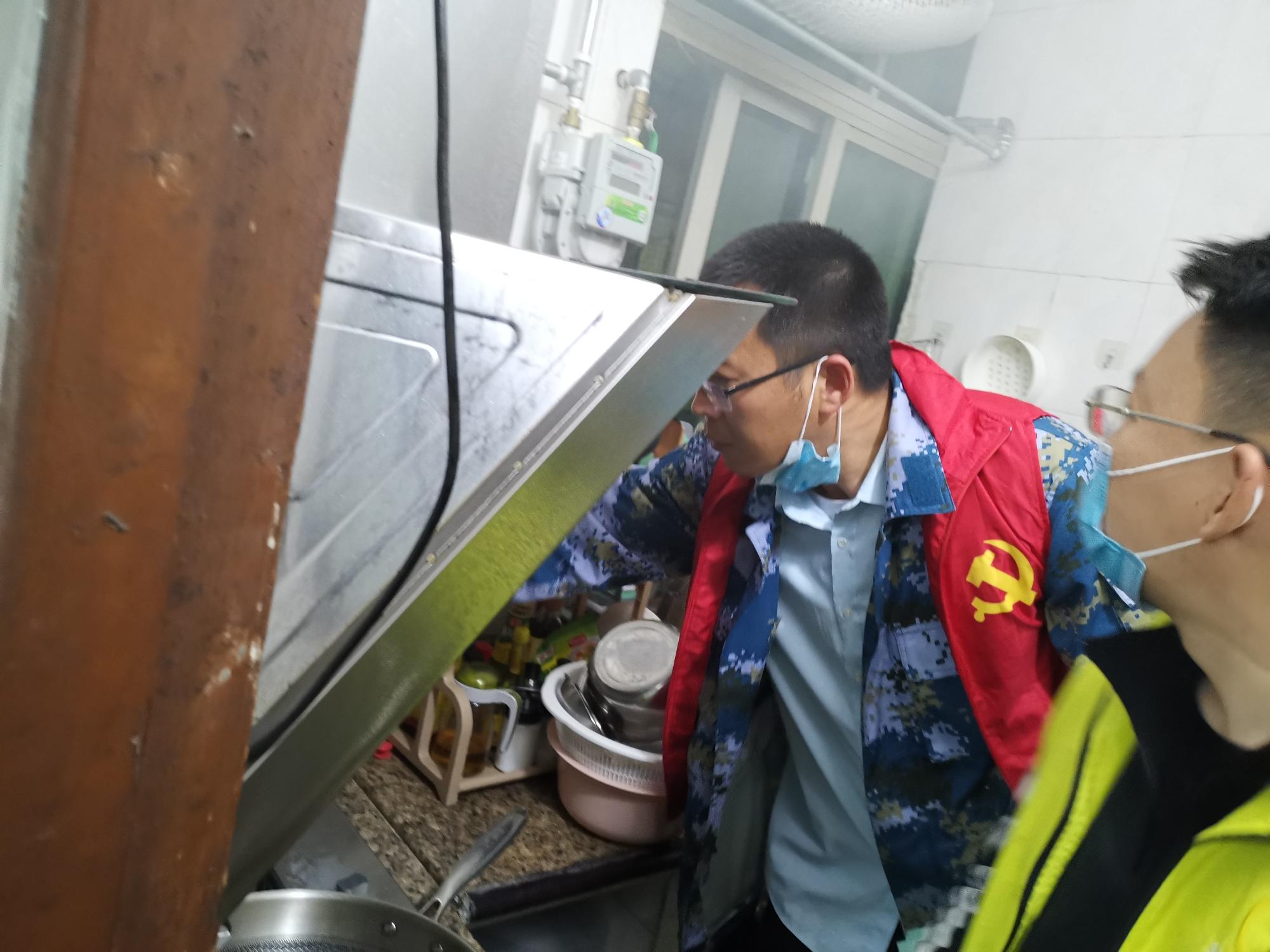 ▲党员孙军超查看煤气灶情况