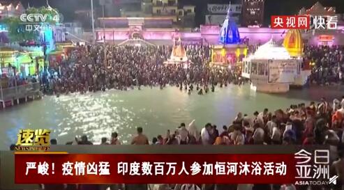 【超200万印度教朝圣者聚集恒河边沐浴】据印媒报道,12日,有超过两百万印度教朝圣者聚集在恒河岸边沐浴河水庆祝大壶节。印度警方表示,由于人群数量太过庞大,根本无法采取限制措施,而且大部分人都没戴口罩。