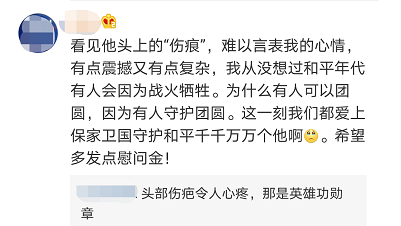 看了祁发宝身体恢复的视频后,网友纷纷表示,“额头明显凹下去一块,心疼!”“祝福团长,致敬英雄们,感谢您们的守护!”