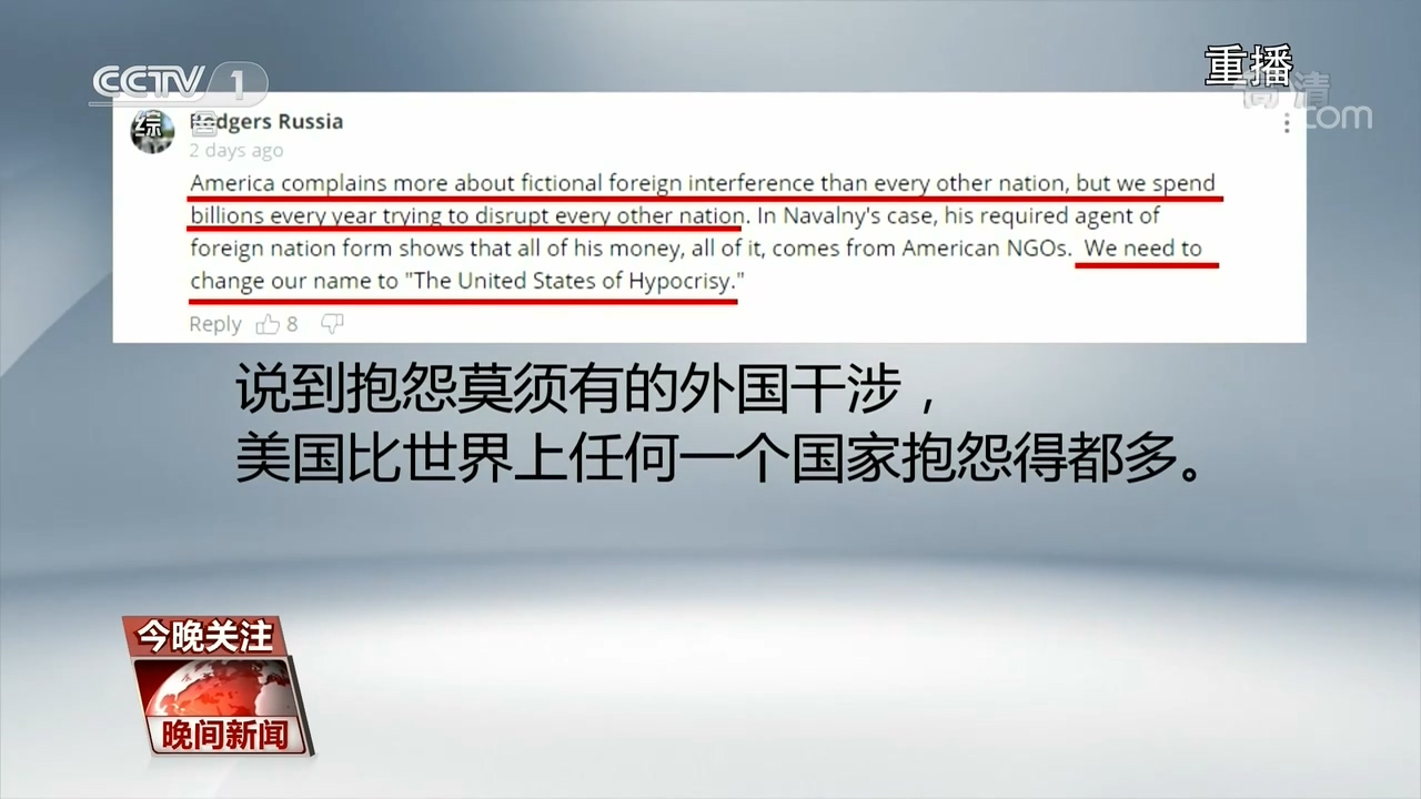 在今日俄罗斯网站上,一名网友对美国的行为一针见血地指出:说到抱怨莫须有的外国干涉,美国比世界上任何一个国家抱怨得都多。但是实际上我们每年花几十亿美元用来把其他国家给搞乱。我们应该把名字改成“虚伪合众国”。