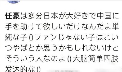 有网友发现,任豪的发言被搬运到日网,国外网友评价他“大脑简单四肢发达”。