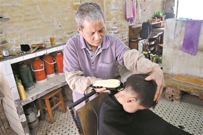 潭山村有一位闻名乡里的“剃头佬”,他叫许豪昭,他的理发店不用电吹风,也没有发廊洗头、造型服务,却凭借一手剃头好手艺和10元理发的平民价格备受街坊喜爱。