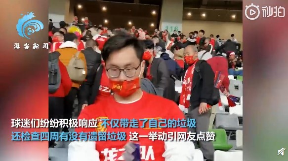 13日下午,东京奥运会女足亚洲区预选赛附加赛第二回合,中国女足主场2-2战平韩国女足,成功晋级东京奥运会。当日,大批中国球迷到场助威,比赛结束后,球迷们不仅带走了自己的垃圾,还检查四周有没有遗留垃圾。