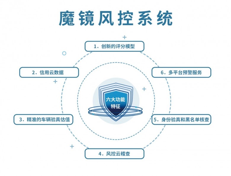 在反欺诈评估之后,还要对申请人的信用风险进行判断。例如,卡尔数科自研的“魔镜”风控系统,具有六大功能特征,其中的“信用云数据”功能就是通过合作第三方平台沉淀丰富的个人信用行为数据,在客户本人授权的基础上,对客户身份资料进行验真,通过多维度查询其过往信用记录,排除黑名单客户及恶意欺诈行为。