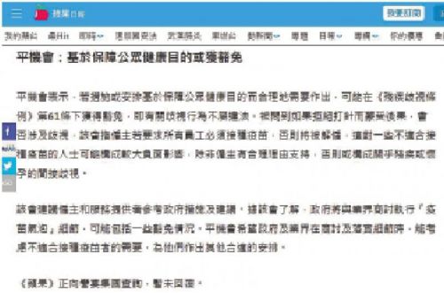 《苹果日报》日前在其网络版一篇关于“疫苗气泡”的报道中,引述了平机会发表的一份公开声明的部分内容,但在平机会不知情的情况下,在引述平机会回应时加入了平机会一直反对使用的污名化标签即“武肺”。对此,平机会指出,世界衞生组织早在去年初已要求停用相关污名化标签,更对今次疫症正式命名为“2019冠状病毒病”。