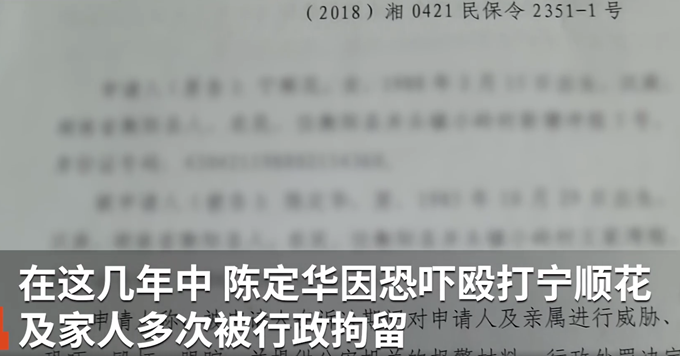 宁顺花前代理律师王震霆透露,他代理此案时曾被陈定华砸过车,“他还威胁法官和承办人员,但是他知道法律的边界在哪里,充其量构成寻衅滋事,所以就很麻烦。