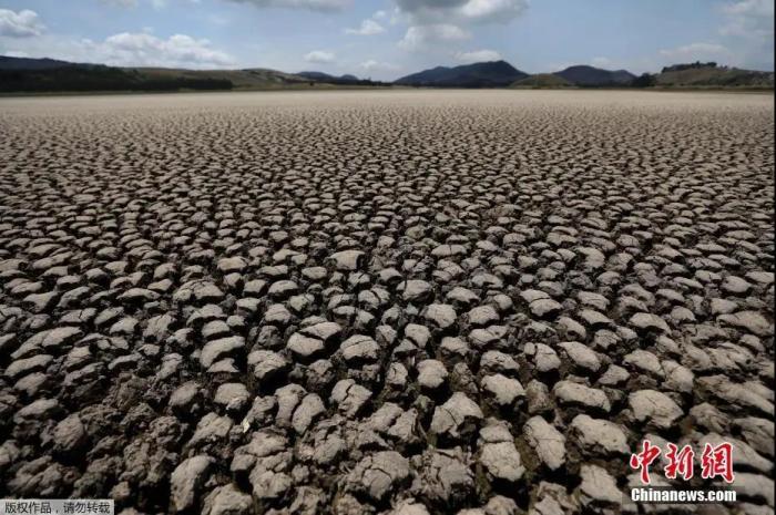 当地时间2021年2月17日,哥伦比亚,由于降雨量少,苏埃斯卡泻湖遭遇干旱,河床土地龟裂。