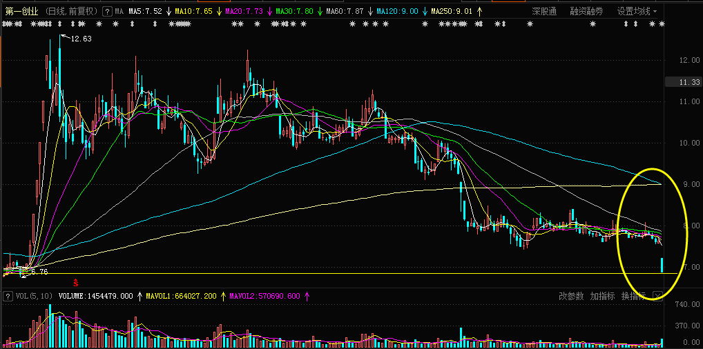 果然,今日第一创业直接跳空下杀跌停,直接跌回了去年7月初那波暴拉行情的启动位置,创出了9个多月的新低,期间买入的投资者悉数被套。