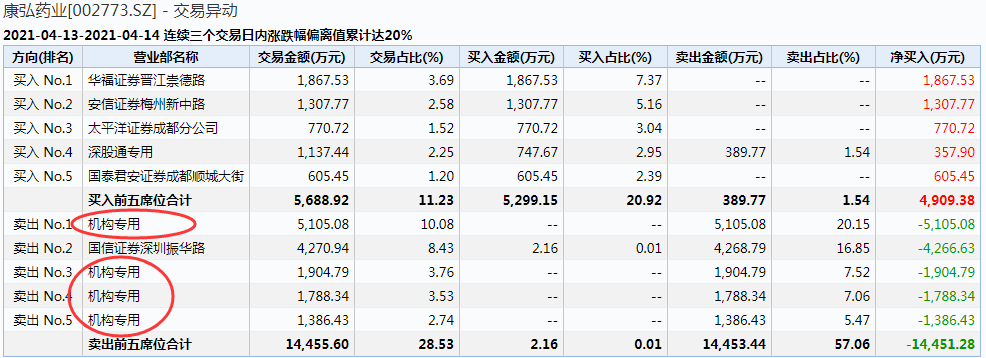 自从4月9日晚间发布停止国产眼底药“独苗”——康柏西普眼用注射液全球多中心临床试验的公告之后,康弘药业之后便连收3个一字跌停板,今日跌势有所减缓,但仍然大跌逾8%。在这期间机构更是毫不犹豫地“清仓大甩卖”: