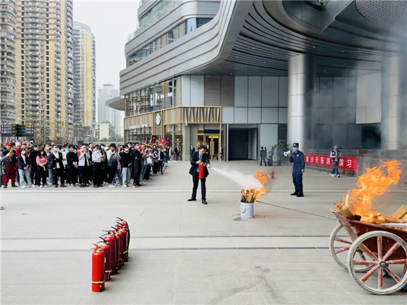 员工现场操作灭火器 沙坪坝区消防救援支队供图 华龙网发