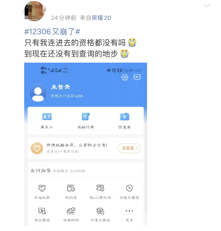 不过,就在不少人憧憬着出游、撒欢时,已经有网友表示车票难抢到连12306都崩了,相关话题还迅速冲上热搜引发讨论。