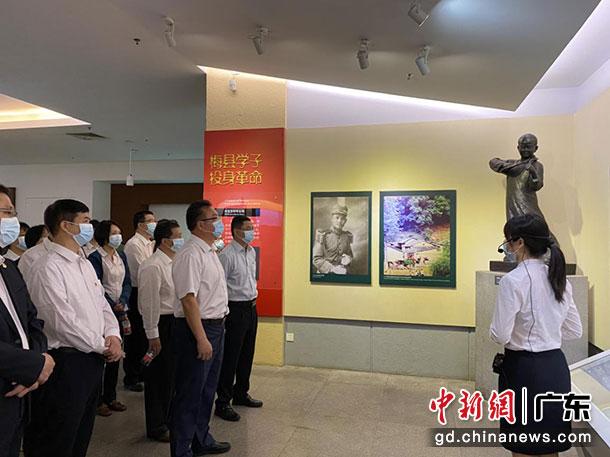 农发行梅州市分行全体党员怀着敬仰心情认真聆听讲解员讲解叶帅生平。 (农发行梅州市分行供图)