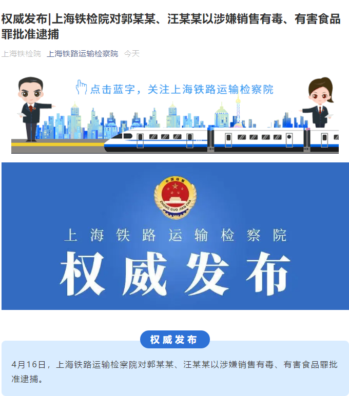 记者从上海铁路运输检察院获悉,4月16日,检察机关对郭某某、汪某某以涉嫌销售有毒、有害食品罪批准逮捕。3月11日,上海警方通报成功侦破一起生产、销售添加违禁成分(西布曲明)减肥类食品案件,抓获生产人员曾某某(女,26岁),销售人员郭某某(女,30岁)等32名犯罪嫌疑人,其中郭某某系郭美美。(总台央视记者 俞翔)