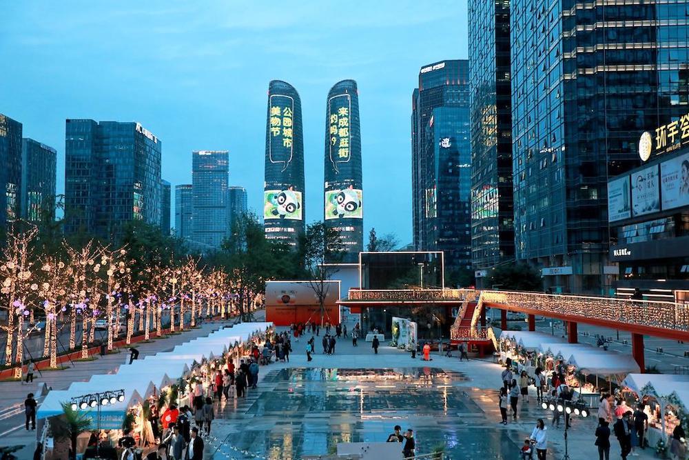 成都正在加快建设践行新发展理念的公园城市示范区。公园城市不是“公园+城市”的简单叠加,还是市民游客可欣赏、可参与、可消费的美好生活场景。4月16日晚,天府双塔再次“美”出天际!一条“成都约你来逛街”的朋友圈“刷”上了双子塔,美轮美奂的灯光秀点亮成都夜空,宣告成都公园城市美物节的大幕正式开启。