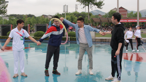 在运动会趣味运动项目“呼啦圈”的赛场上,这里考验的是队友之间的默契:几名队员手拉手一字排开,当听到发令号后,利用身体的摆动移动呼啦圈给下一位队员。通过比赛,队员们不仅在加强了与队友同事们的联系,也深刻体会到了团队协作力的重要性。