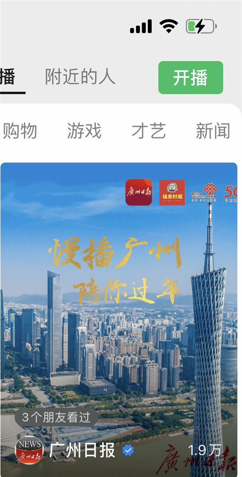 广州日报视频号也推出了“慢播广州陪你过年”