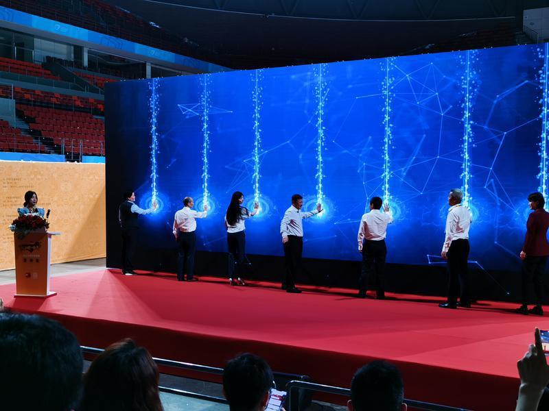 当天上午的开幕式上嘉宾如云,多所学校的校领导参加了开幕式。龙华区教育局局长王玉玺,深圳大学附属教育集团总校长、深大附中党委书记、校长刘为基,晶报常务副总编辑冯景在开幕式上致词,上述嘉宾以及中国科学院深圳理工大学附属实验高级中学校长宋如郊、深圳市第一职业技术学校校长黄建行、深圳市德邦高级中学总校长陈明芳、深圳(南山)中加学校党支部书记杜娟一同上台按亮手印启动开幕式,场面壮观。