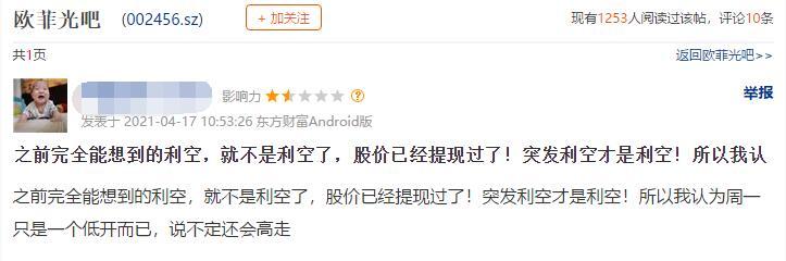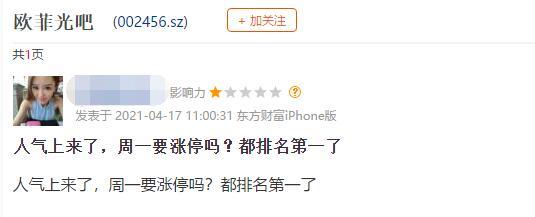 不过,也许是受到其他“反向操作”的个股影响,部分股民对欧菲光接下来的走势倒是相当乐观,甚至有连续数涨停板的预期。