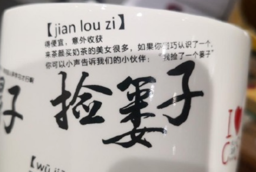 除了“捡篓子”马克杯,网友公布的还包括茶颜悦色一种茶包的图片,上面印有“官人我要”四个大字,下方的小字体为“饮茶”,一旁的英文为“i want you”。茶包下方一段关于“套路”的文字结尾为:“撩人从这一套开始吧!”