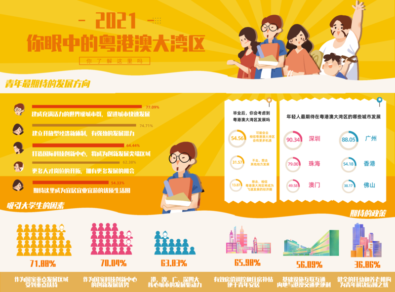 调查显示,62.38%的受访大学生期待大湾区建设开拓更多就业机会和发展空间。